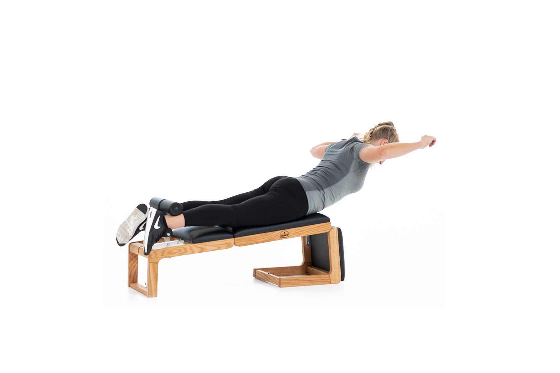 Der TriaTrainer vereint drei Geräte in einem: In der kompakten Grundposition dient er als klassischer Bauch- und Rumpftrainer und lässt sich schnell und unkompliziert ausklappen, um so zu einem Rücken- bzw. Potrainer zu werden. Vollständig ausgeklappt wird der TriaTrainer zur stilvollen Hantelbank für abwechslungsreiches Krafttraining.